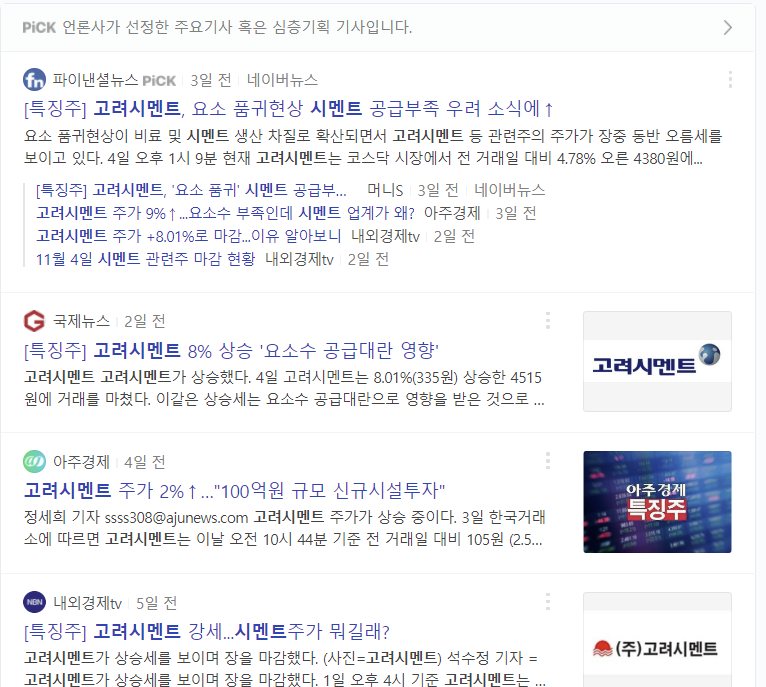 고려시멘트 관련 뉴스, 고려시멘트 기업 계요, 고려시멘트 주요 사업 내용, 고려시멘트 차트 분석, 고려시멘트 주가 전망에 대해 알아보겠습니다.