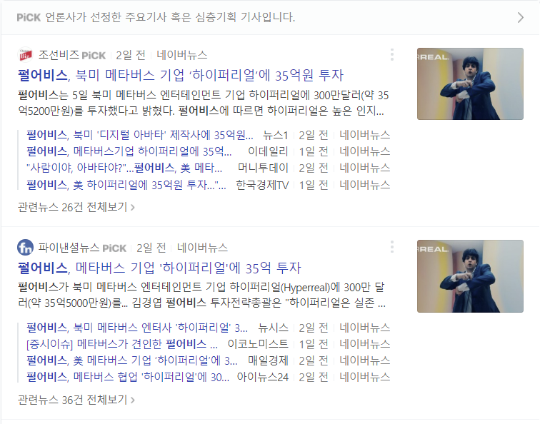 김경엽 펄어비스 투자전략총괄은 “하이퍼리얼은 실존 인물의 가상 아바타화에 있어 선두업체이자 업계 최고의 전문성을 입증한 회사”라며 “펄어비스는 하이퍼리얼과의 파트너십을 구축해 게임 이외에도 메타버스 시장에 대한 동향과 노하우를 공유하며 사업 협업을 추진하겠다”고 투자 배경을 밝혔습니다.