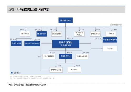 • 현대중공업, 현대삼호중공업, 현대미포조선, 코마스, 현대이엔티, 현대중공업모스 등 다수의 국내외 종속기업을 보유하고 있음.